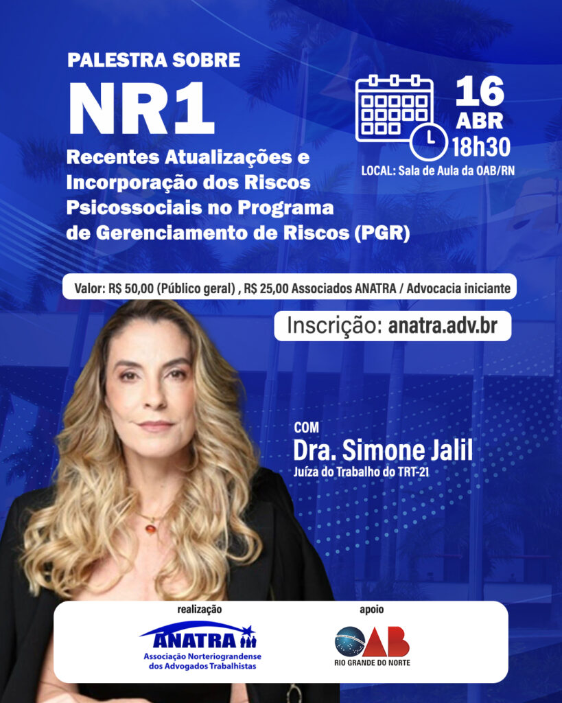 A NR-1 passou por mudanças importantes e agora inclui também os riscos psicossociais dentro do Programa de Gerenciamento de Riscos (PGR). Para entender essas atualizações e como elas impactam empresas, advogados e profissionais da área trabalhista, essa palestra é uma oportunidade imperdível.